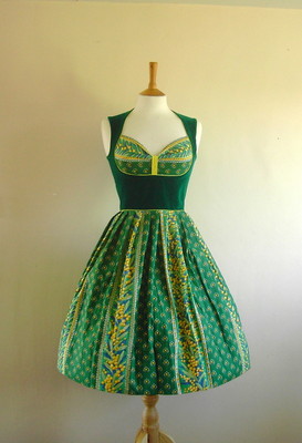 You can imagine my joy when I stumbled upon a wonderful website that sells the most stunning replica fifties dresses in an array of fabrics to suit any palette. MISI is a website that sells a variety of handmade goods, taking pride in the fact that their stock is not mass produced and one of millions – that much of their stock is one of a kind. It is in MISI’s fashion section that I happily came upon a variety of dresses made using original dressmaking patterns from the fifties enabling them to appear original.It would take a lot of confidence to step out in one of these dresses as it is so easy to stand out when wearing something other than the Jack Will’s hoody, jeggings and Ugg boot norm. That said, those that would look at you as being different, would be doing so admiringly as the one with enough confidence to be so. The dresses from MISI, when comparing to an ‘occasion dress’ you might buy on the high street, are not that expensive. They range from £40-£200 depending on the fabrics but all are handmade and well worth every penny. Go ahead! Treat yourself to a dress from MISI, team with killer heels and a retro hair do and have faith in the fashion of the fifties- they really knew what they were doing.
