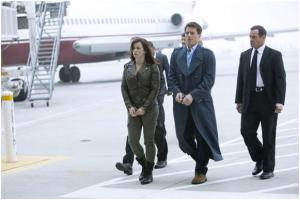 And it was (albeit only marginally). The next part, ‘Rendition’, is spent entirely on a plane with Gwen successfully gathering together the ingredients for an antidote to arsenic poisoning by shouting at people. All that happens back on the ground during their lengthy flight is Danes, now a free man, breaking down live on television and expressing his regret at the death of the girl he killed, unrealistically gaining him some sympathy with the viewers of the show. But then he’s approached by PR agent Jilly Kitzinger (Lauren Ambrose), who offers to represent this new celebrity. He refuses, but we will be seeing a lot more of her later, so you can safely say that episode 2 moves the story forward by about a centimetre. But hey, at least it moves forward, right? Right?