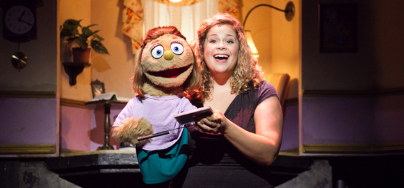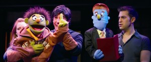 Many of the actors/puppeteers had more than one character to play, which meant in some scenes ensemble actors were onstage controlling one puppet, while they controlled the other and voiced both. More often than not, however, the double-cast puppets were in separate scenes and rarely onstage together. However, Katharine Moraz was the voice of both Kate Monster and Lucy The Slut, two key characters, and the complete opposite of one another. These characters also had several scenes together. She was exceptionally tactful in that whenever Lucy was talking or singing while she was controlling Kate, she had her back turned or held the puppet of Kate in front of her face. She was so skilled and efficient in alternating between two characters, that I didn’t even realise she was playing both until halfway through the show. And let’s not forget that she had to use two different voices, both for talking and singing. That takes talent, especially considering most people don’t even have one singing voice…