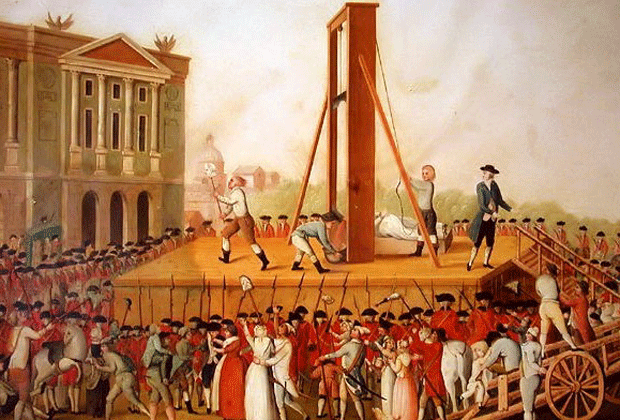 1793— Marie Antoinette is guillotined, her head rolls, revolutionaries eat cake.