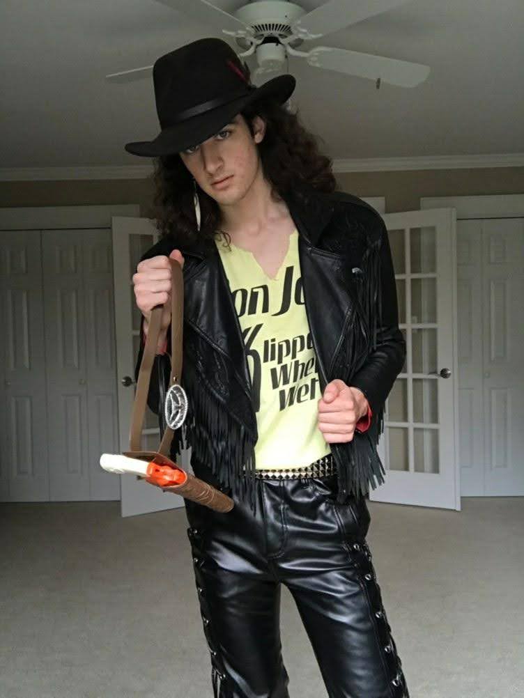 “My favourite glam star? Hmm, I’d have to say either Nikki Sixx, Dee Snider, Blackie Lawless, Dio, Ozzy or George Lynch. I love the fashion from most bands of this genre, so I don’t love these guys jus because of that specifically, but more because of how iconic they are. Blackie Lawless has one of the most iconic voices of metal in my opinion, along with Dio. Nikki Sixx is, well, Nikki Sixx; my favourite member of Mötley. Dee Snider’s looks are very well-known, too, along with his voice. You probably don’t need an explanation for Ozzy – I just love the man. I also love George Lynch and his playing. I love the way he uses his pitch harmonics. He uses just enough, but not too overly so. It’s just so, so, so good; his playing hits different. I don’t even know how to explain it.”