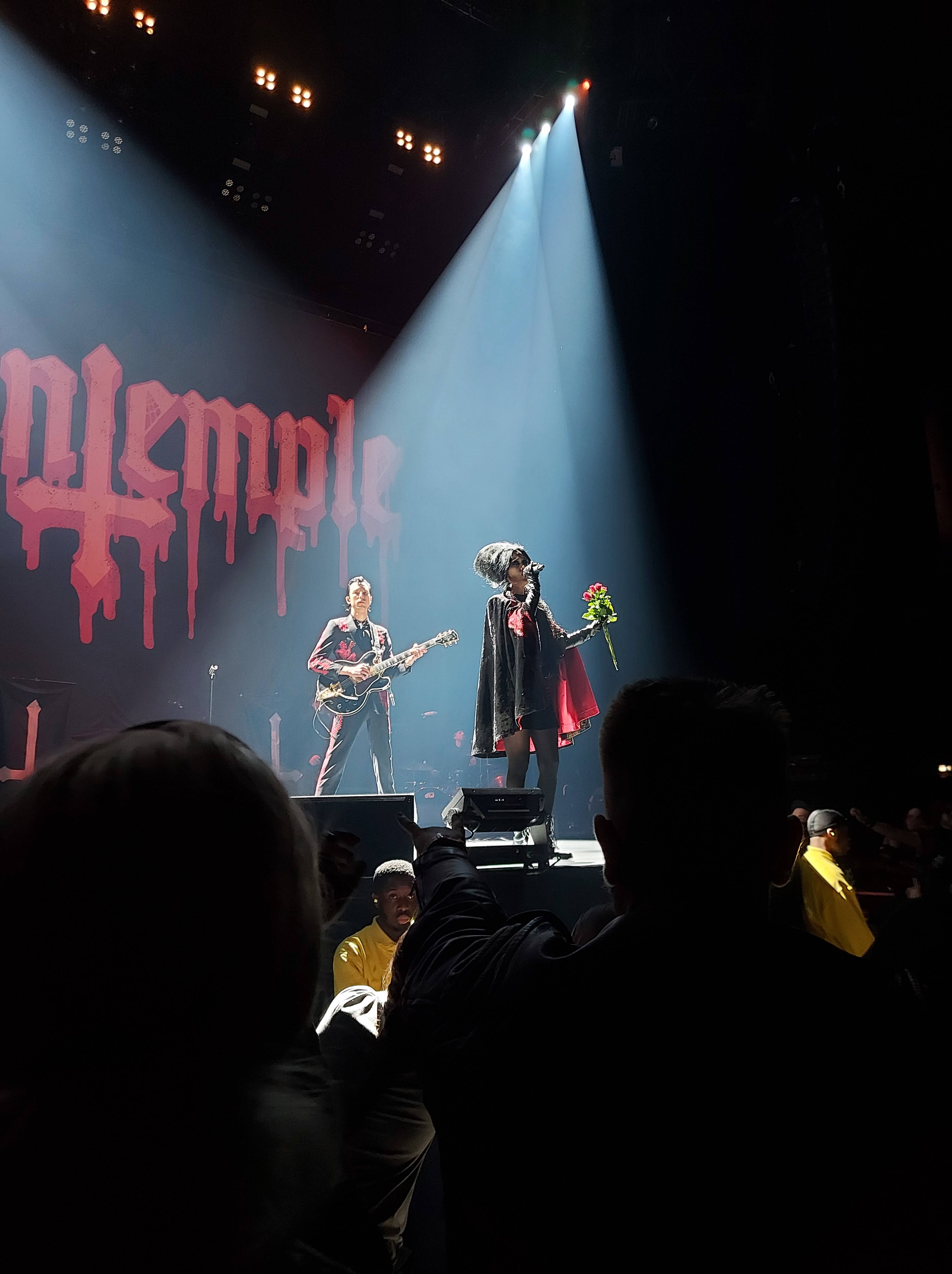 Though their set was only half an hour, Twin Temple rocked and grooved through number after number, with frontman Alexandra James reveling in the devotion and applause. All the while, her husband Zacharystood behind her – clad in a red-brocaded suit, hair slicked back, showcasing his guitar skills with divine elegance.