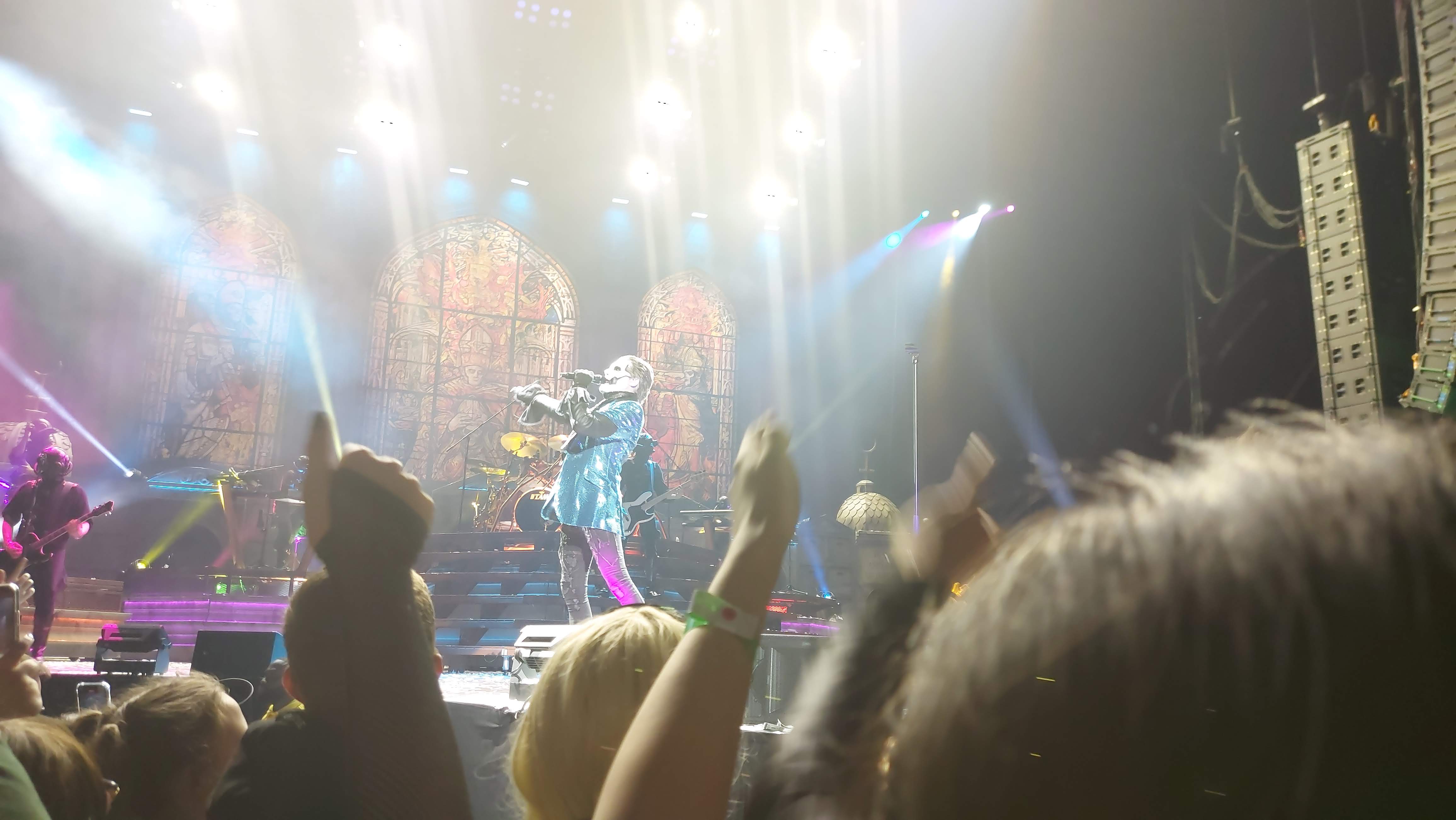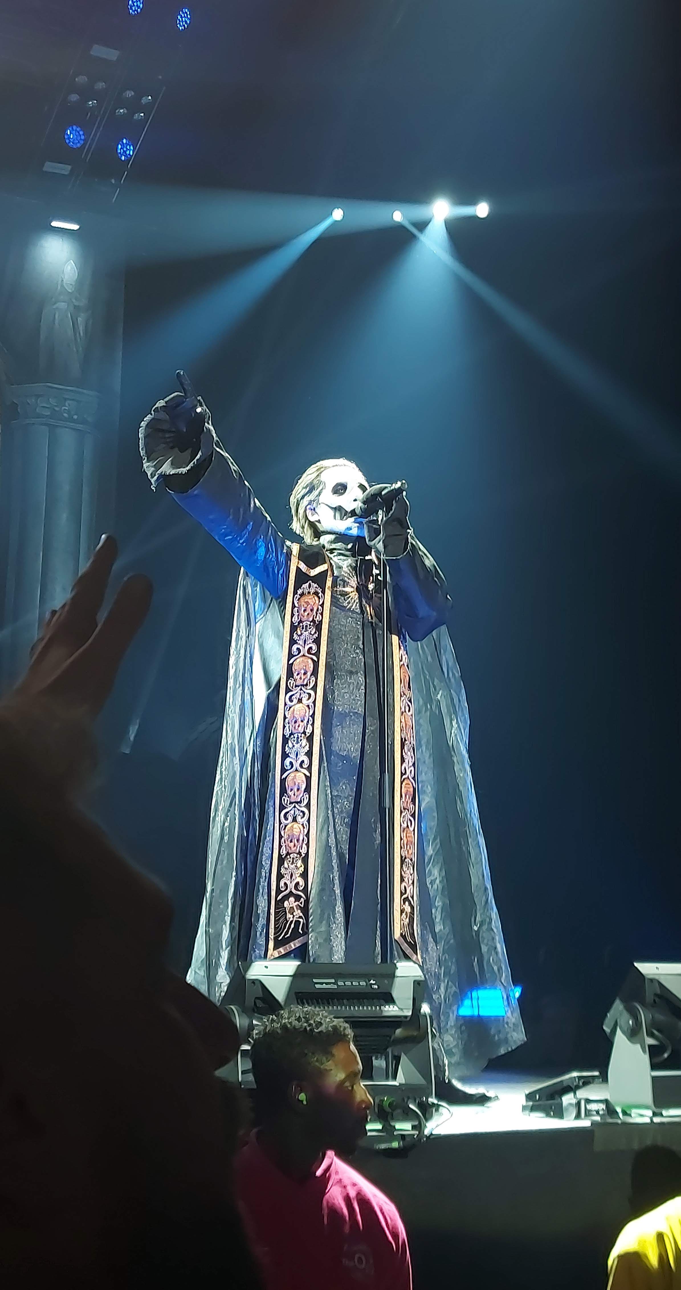 Next came the band’s only cover on the setlist; ‘Enter Sandman’. And it proved about as good as any of their own material, catapulting the crowds back into the musical stratosphere, reigniting the crazed fire within them. ‘Dance Macabre’, once again, showed that it was made for an arena, with Papa now sporting his most dazzling attire yet; a pale blue-sequined suit jacket.