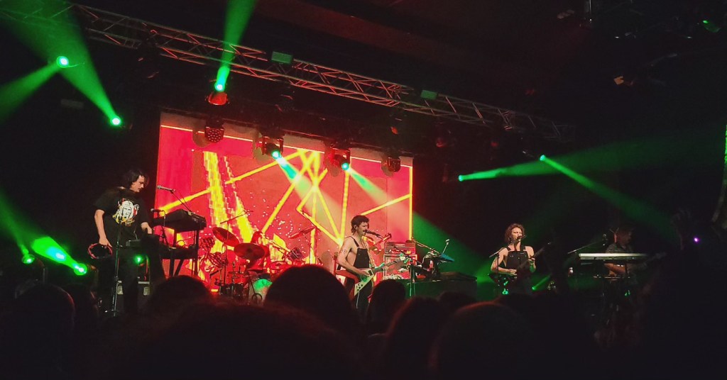 After a predictably meticulous opening DJ set from psych-cumbia group Los Bitchos – full of certified classics in ‘Macarena’, ‘Voulez-Vous’ and ‘Heaven is a Place on Earth’ – the boys from Melbourne waltzed onstage to rapturous applause. Instantly, the atmosphere was something beyond electric. Fans were already on the verge of tears, arms like fleshy spires in the air, vape clouds coalescing high above us and the sweat beginning to form on our brows. There were a few words of thanks for our attendance, some inter-band banter, and then the spectacle began to unfold.